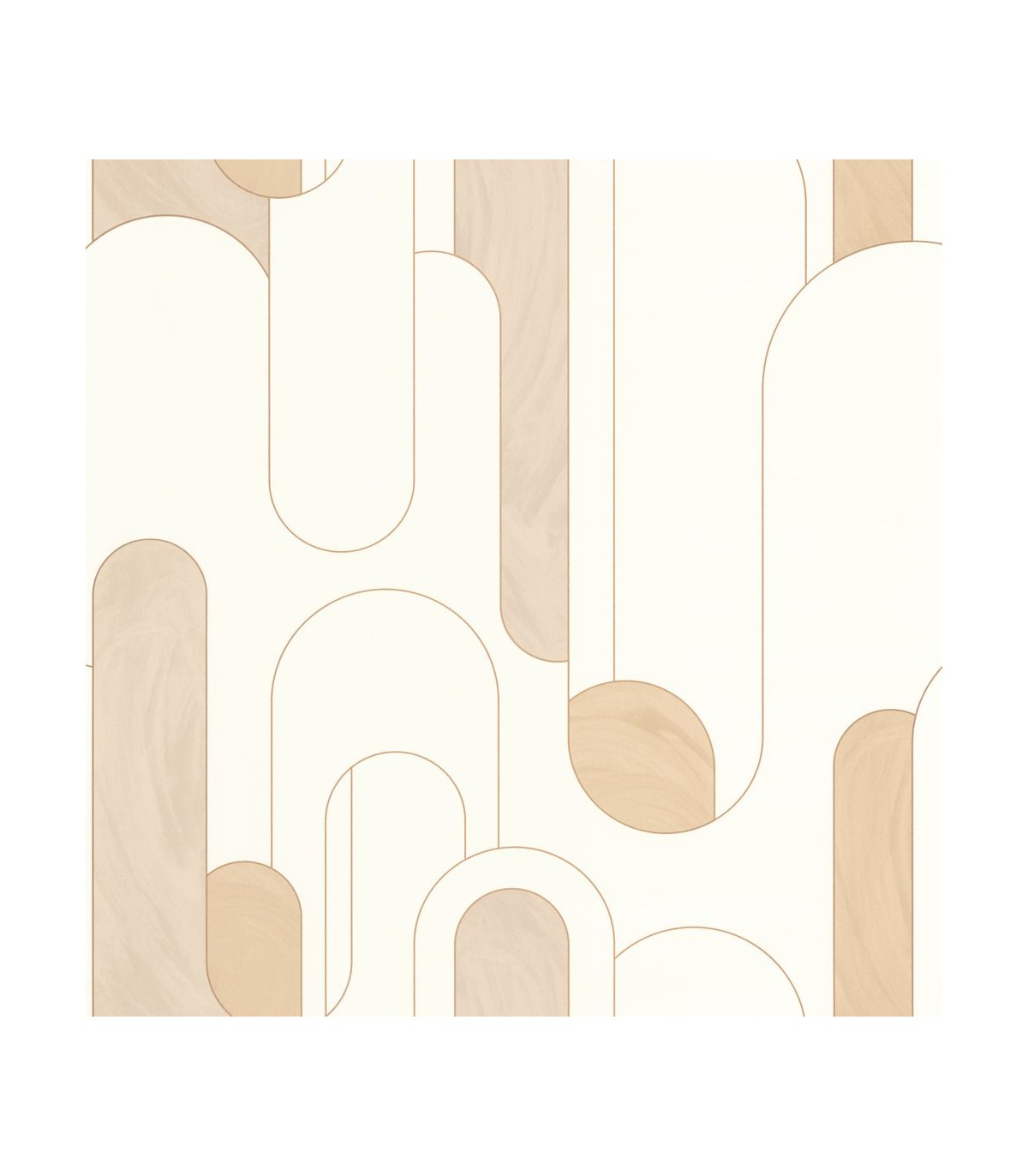 Papel pintado geométrico con motivos en color blanco,beige y dorado.
