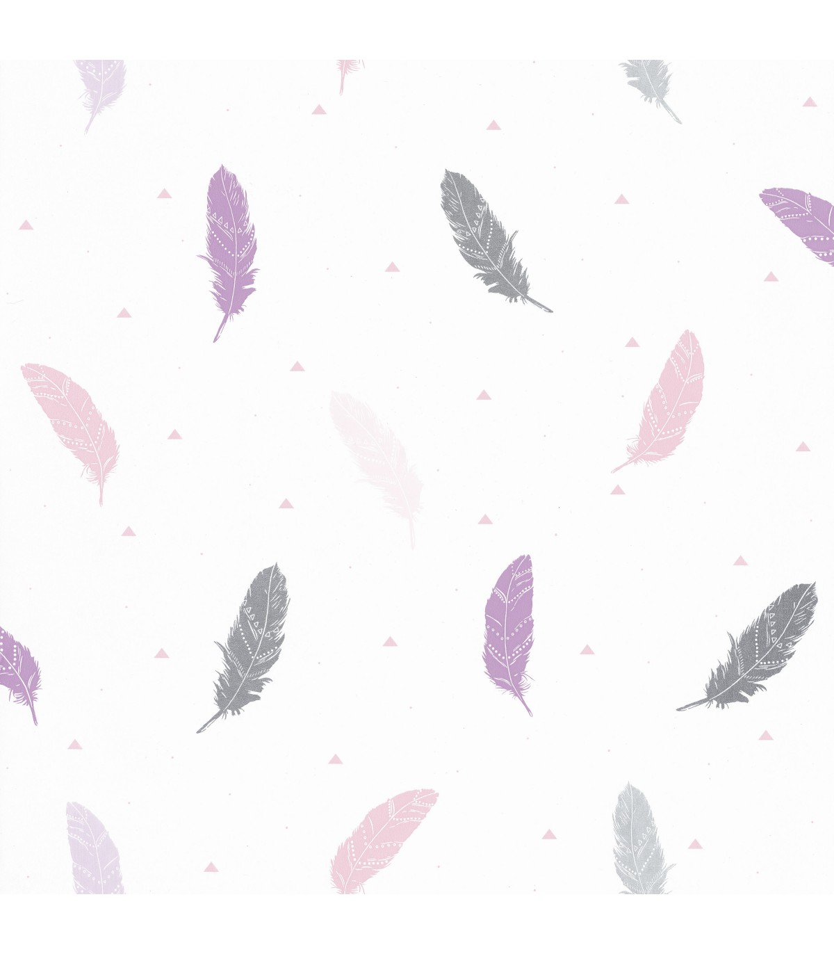 Papel pintado infantil con diamantes en tonos morado,rosa y blanco con estrellitas plata.