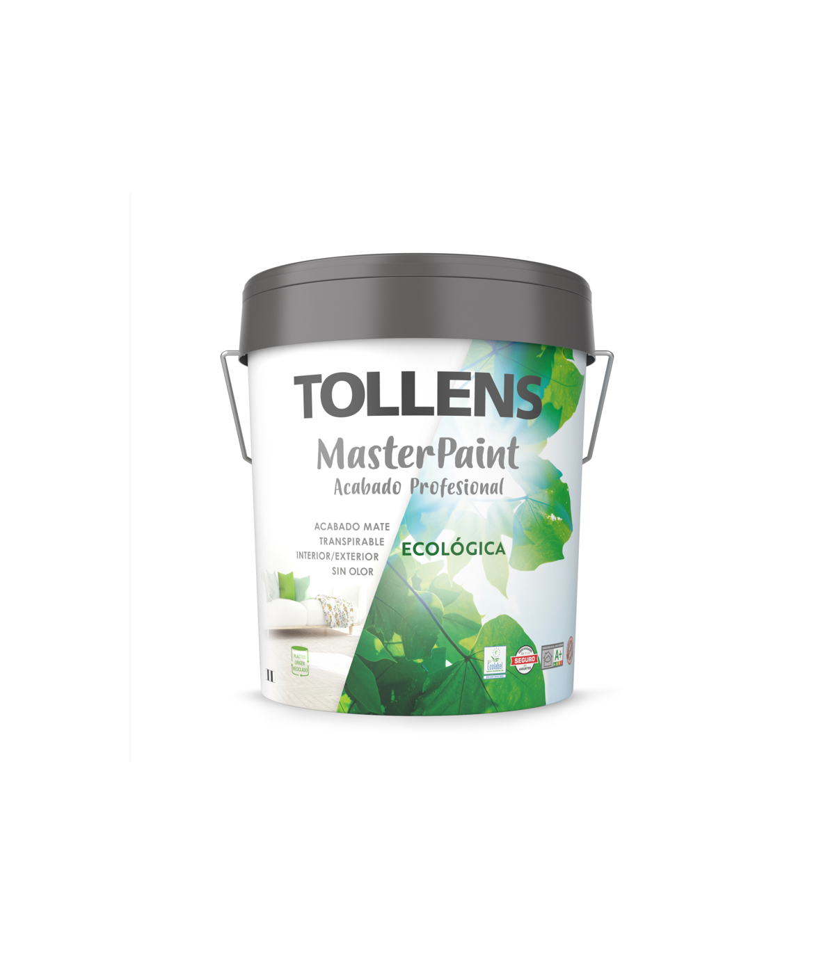 Pintura plástica al agua de acabado blanco satinado, formulada a partir de copolímeros.